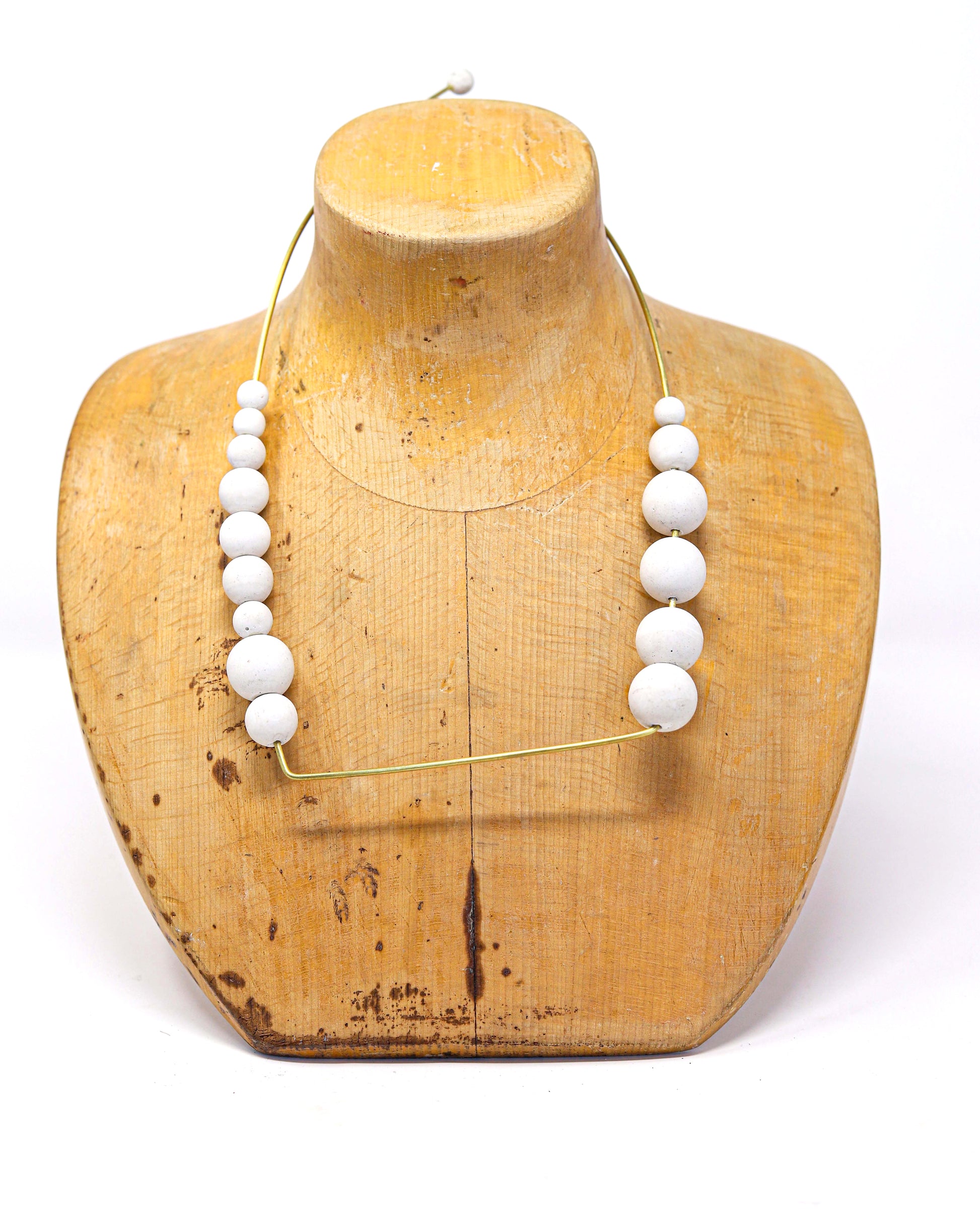 Brass necklace with white cement beads