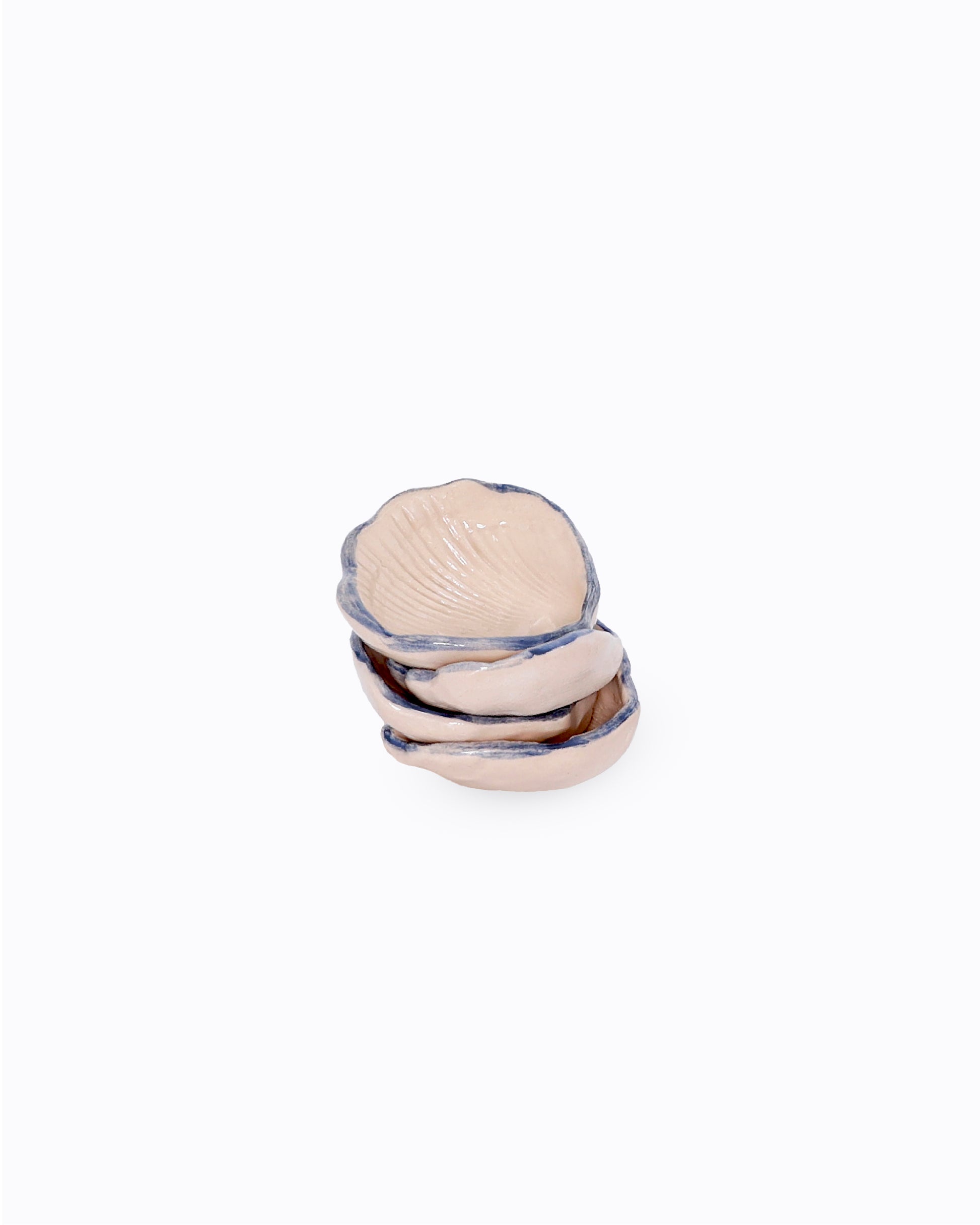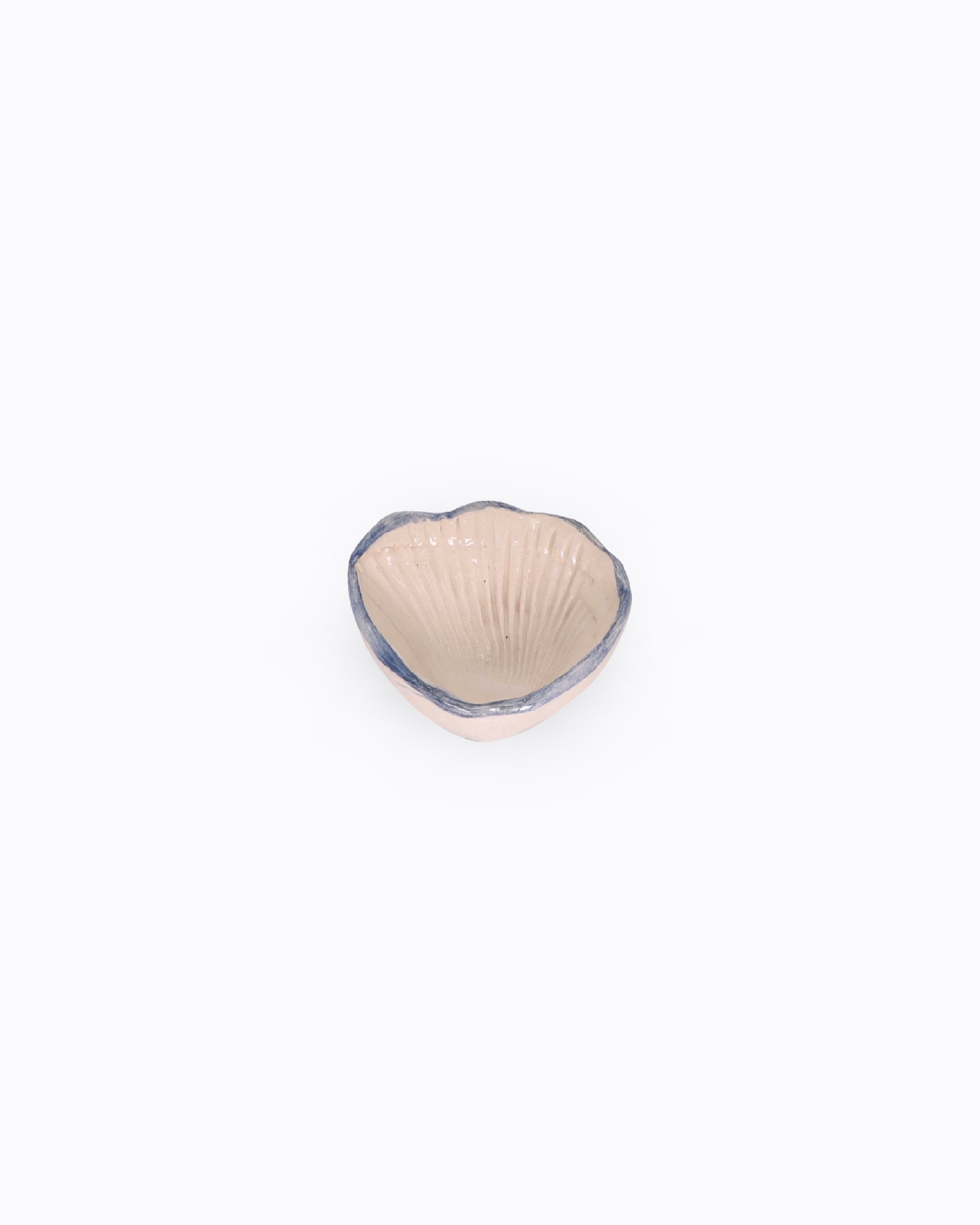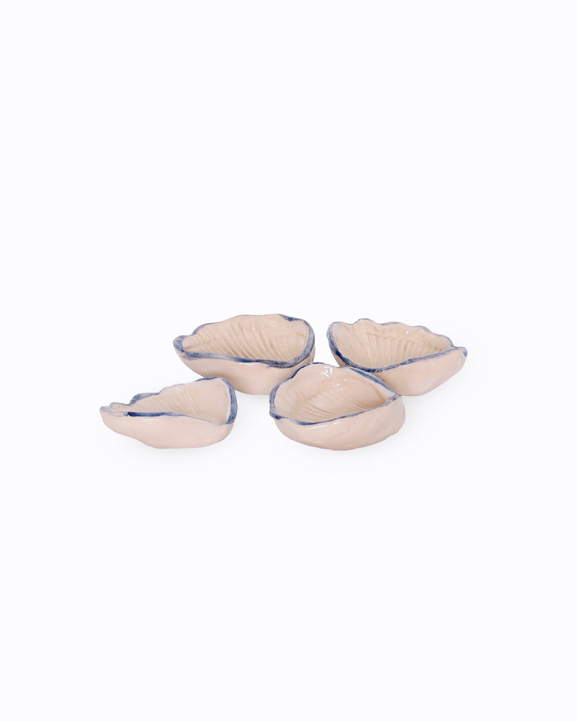 Handmade beige seashell seasoning plate with blue edge