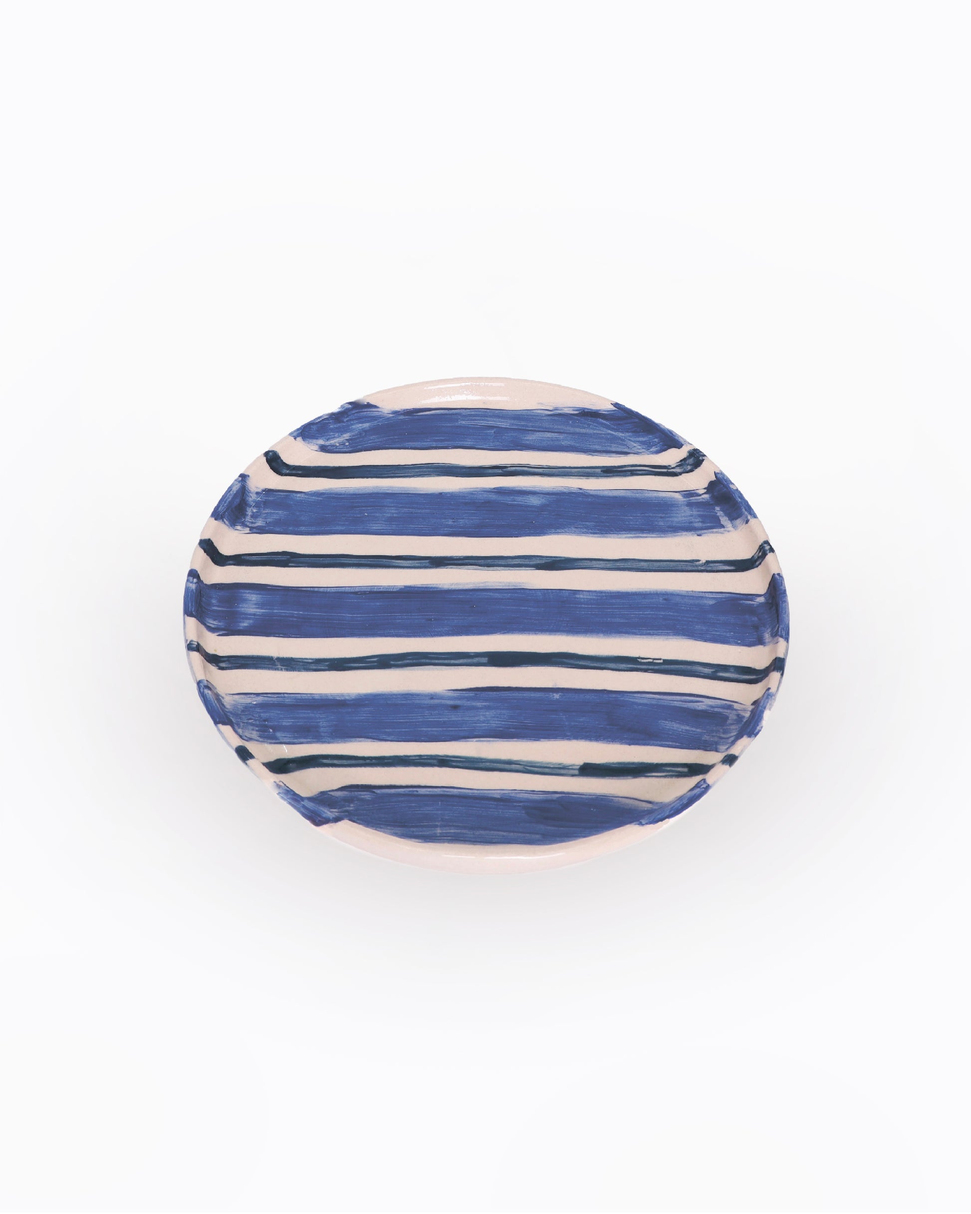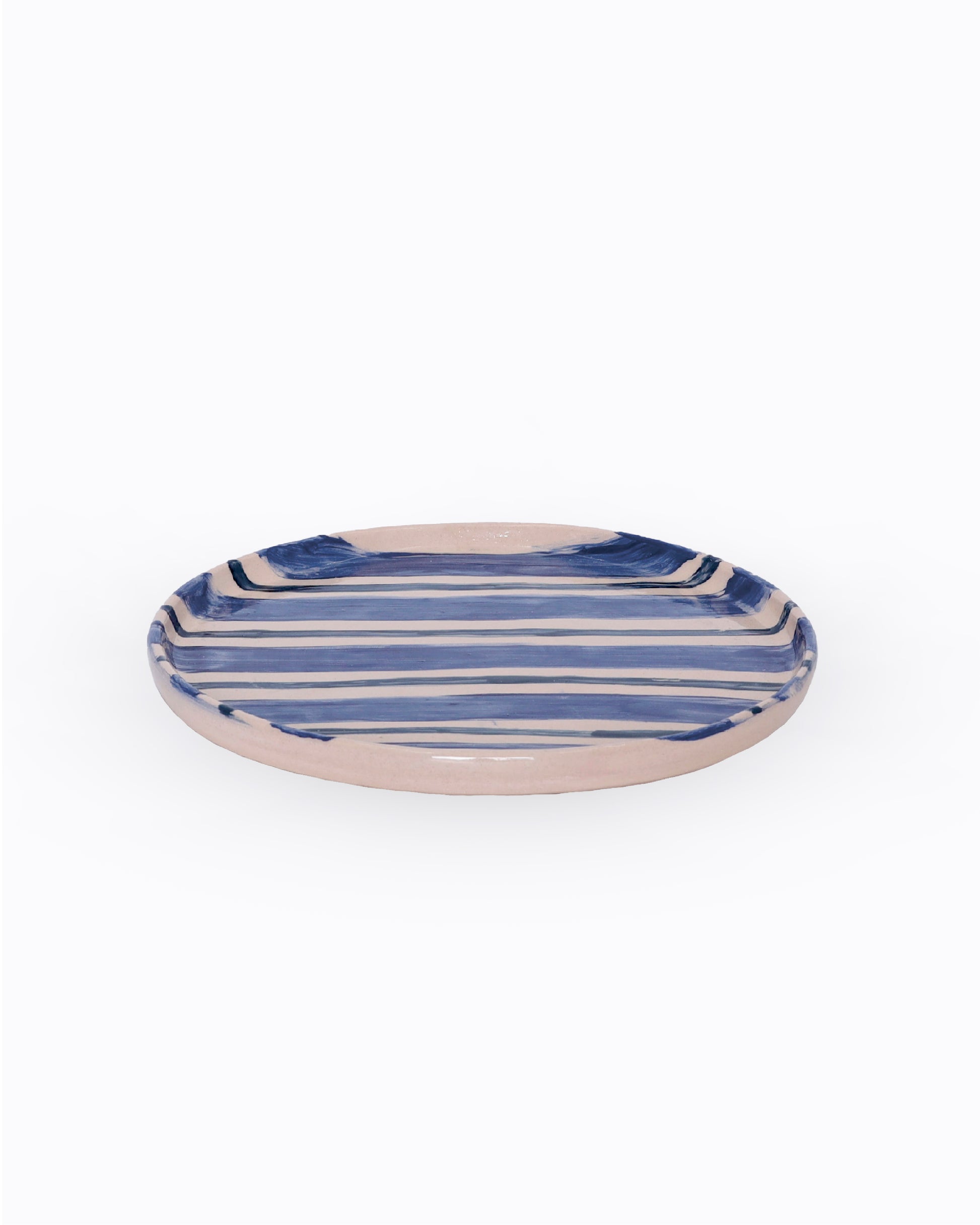 Blue and beige ceramic handmade striped plate Size: 22 x 22 x 1,5 cm |