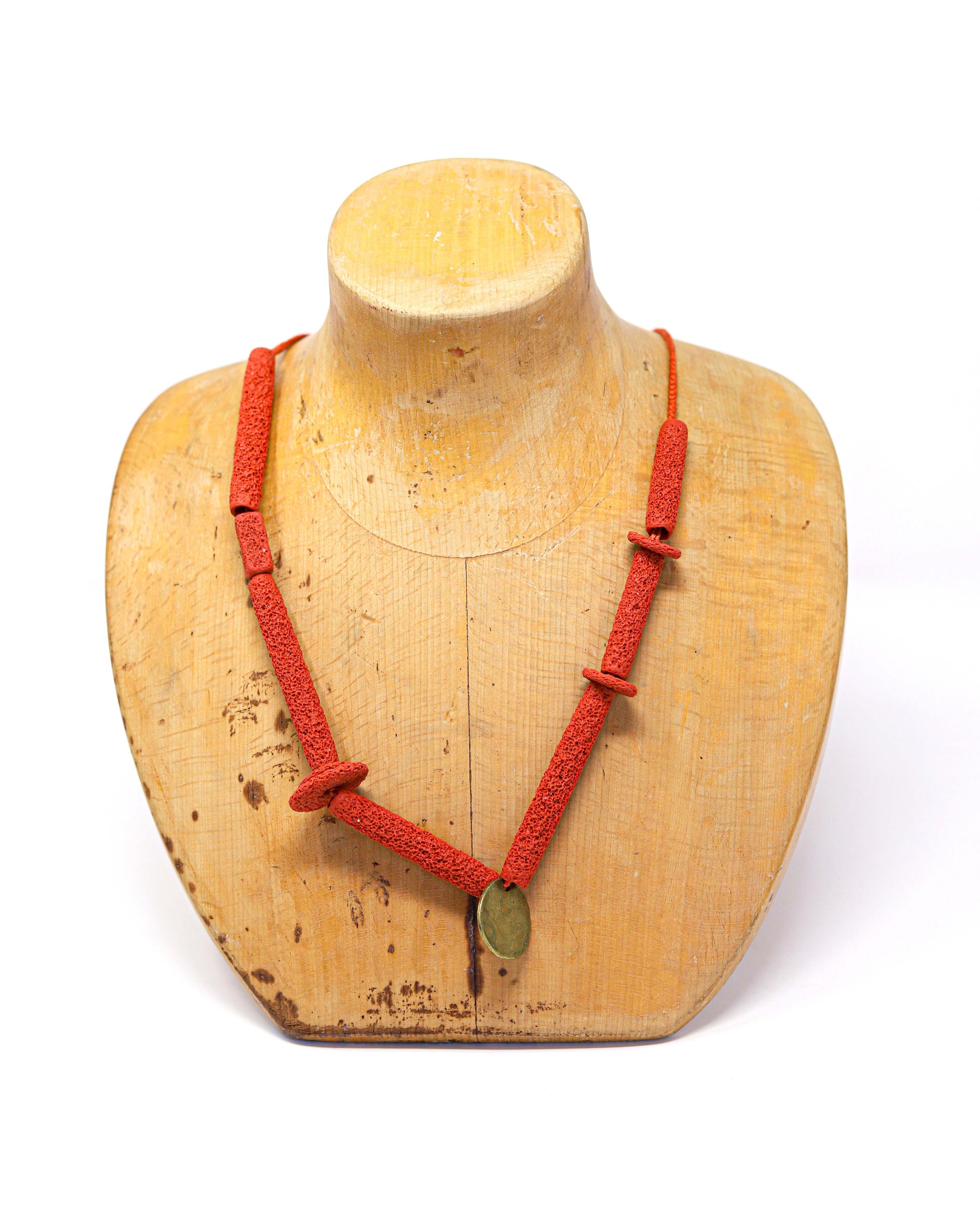 Brick, clay necklace with brass